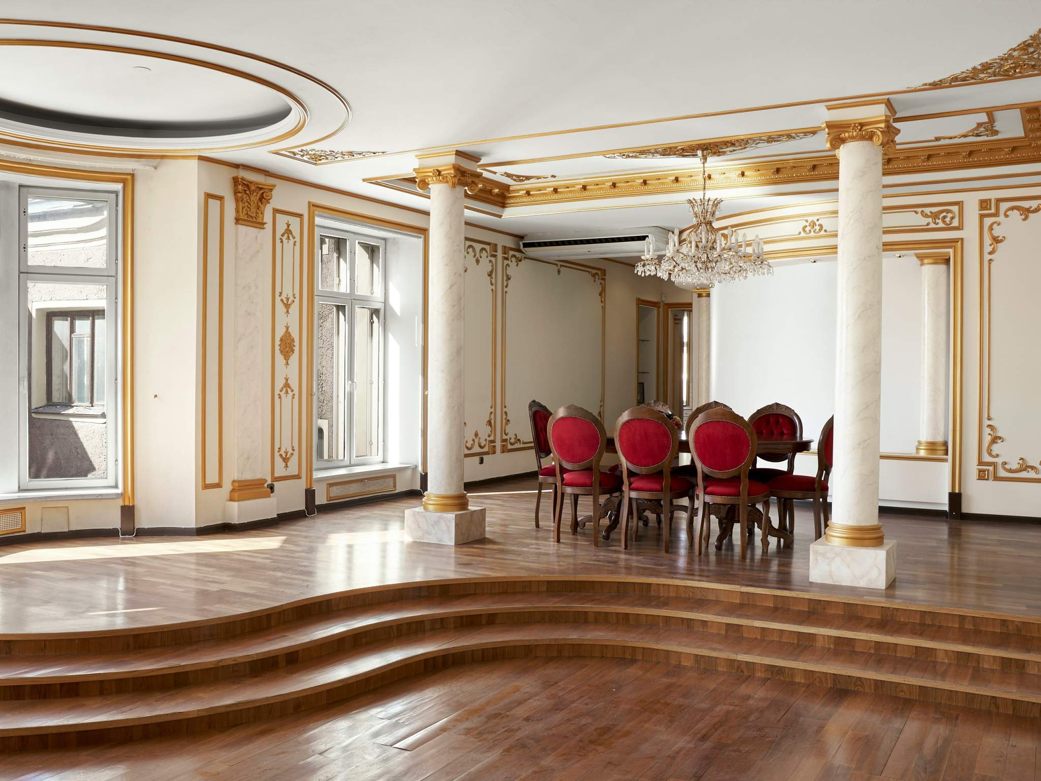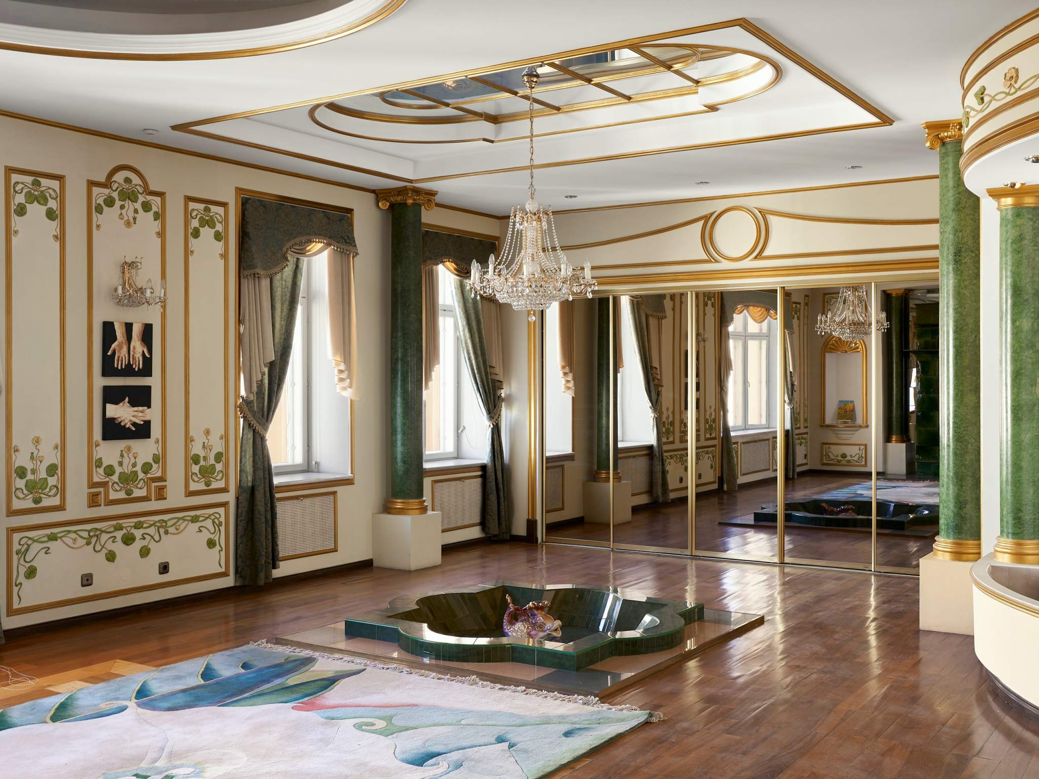 - Парадная гостиная с собственным фонтаном — уникальное инженерное решение, создающее атмосферу загородной виллы в центре мегаполиса.