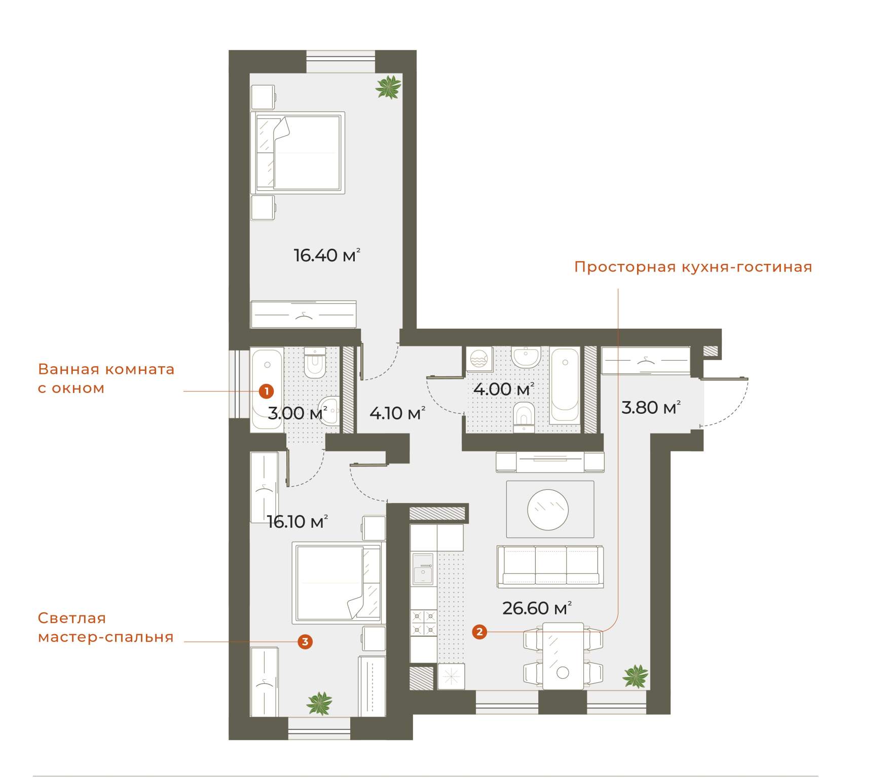 Продается 2-комн. квартира с европланировкой, площадью 74 кв. м в 5 мин. транспортом от м. Пионерская.