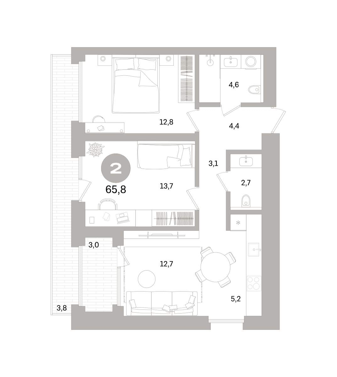Продам двухкомнатную квартиру в новостройке 61 м.кв.