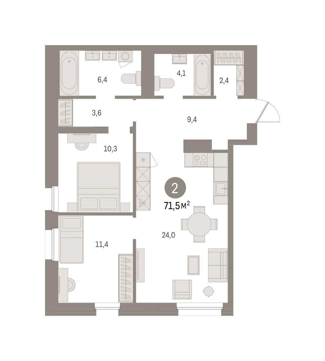 Жилая площадь 22.31 м2, кухня 14.16 м2, предчистовая отделка, совмещенных санузлов - 1.