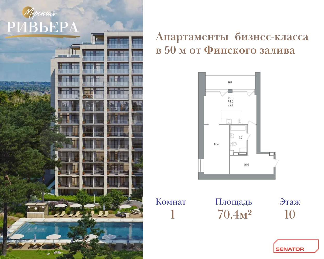 Продаются просторные 1-комнатные апартаменты у самого берега Финского залива. Вид на залив! Идеально для жизни и отдыха. Площадь 70,4 м, высокие потолки до 3м, остекление в пол и глубокая лоджия-аэрарий: можно разместить два шезлонга, кофейный столик и наслаждаться свежим воздухом на собственной террасе. В апартаментах редкий для нашего времени уровень звукоизоляции, это вам позволит наслаждаться тишиной и приватностью, а из крана течет чистейшая питьевая вода. Черновая отделка позволит вам реализовать собственный дизайн.