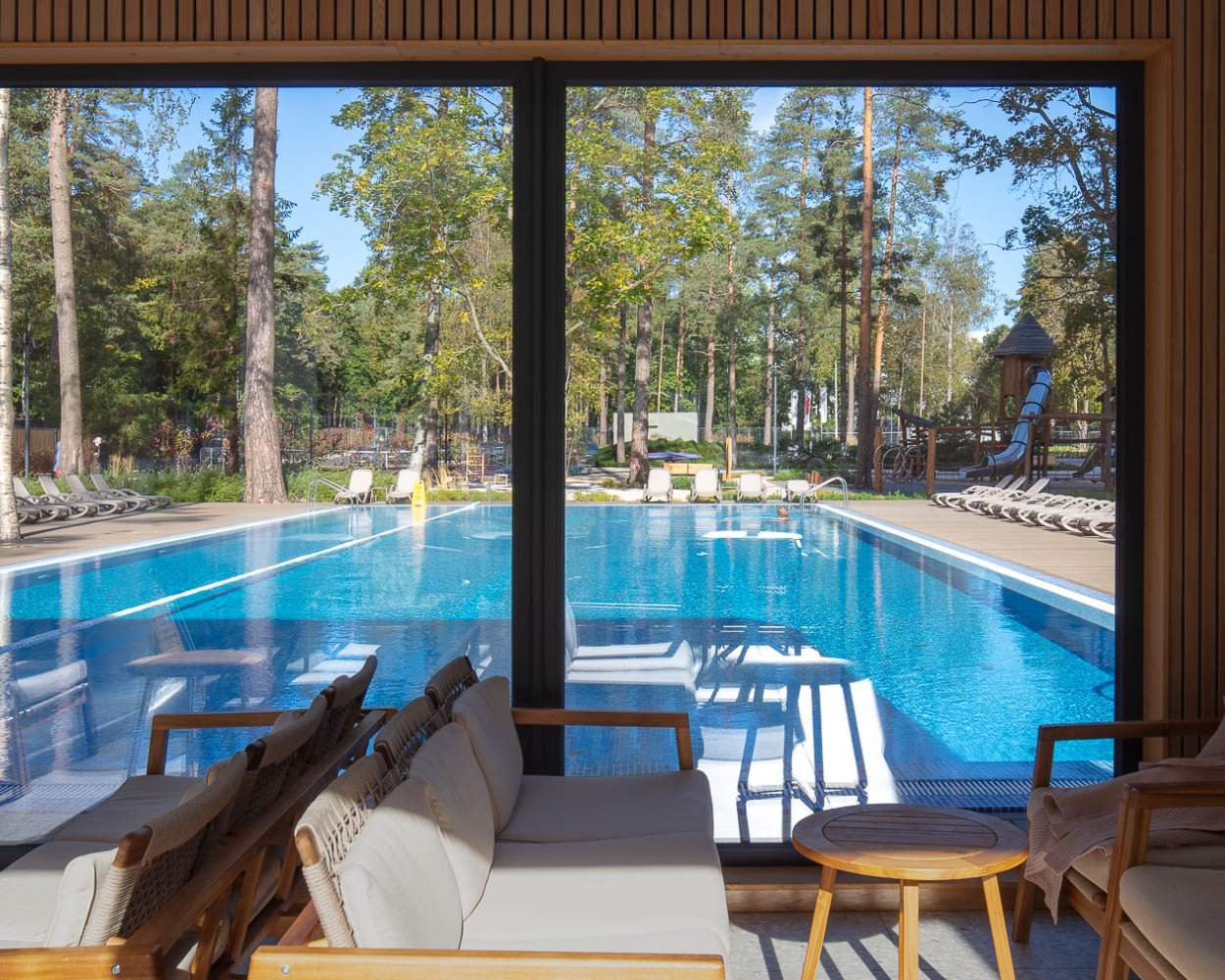 В комплексе всего 13 этажей. Из окон открывается завораживающий вид на Финский залив и многовековой лесной массив.