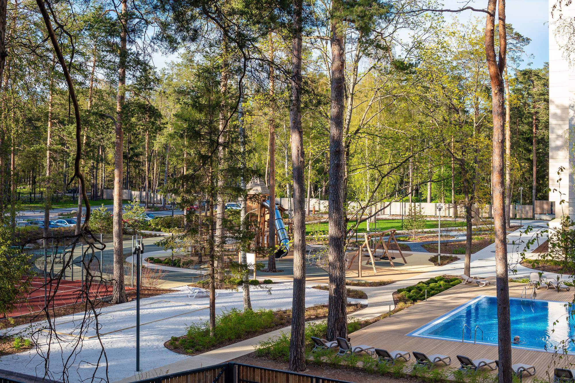 - на закрытой и охраняемой территории комплекса 1,2 га продумана инфраструктура для спокойного или активного отдыха, которая привлекает людей всех возрастов и вкусов. Есть игровые и спортивные площадки, СПА-зона, тренажерный зал, лаунж зона с PlayStation и т.д. Одна из любимых локаций наших туристов - это открытый подогреваемый бассейн 25 м - он работает круглый год, поэтому поток туристов обеспечен вам даже в межсезонье. По сути, комплекс является самостоятельным курортом, что выгодно выделяет его от остальных конкурентов.