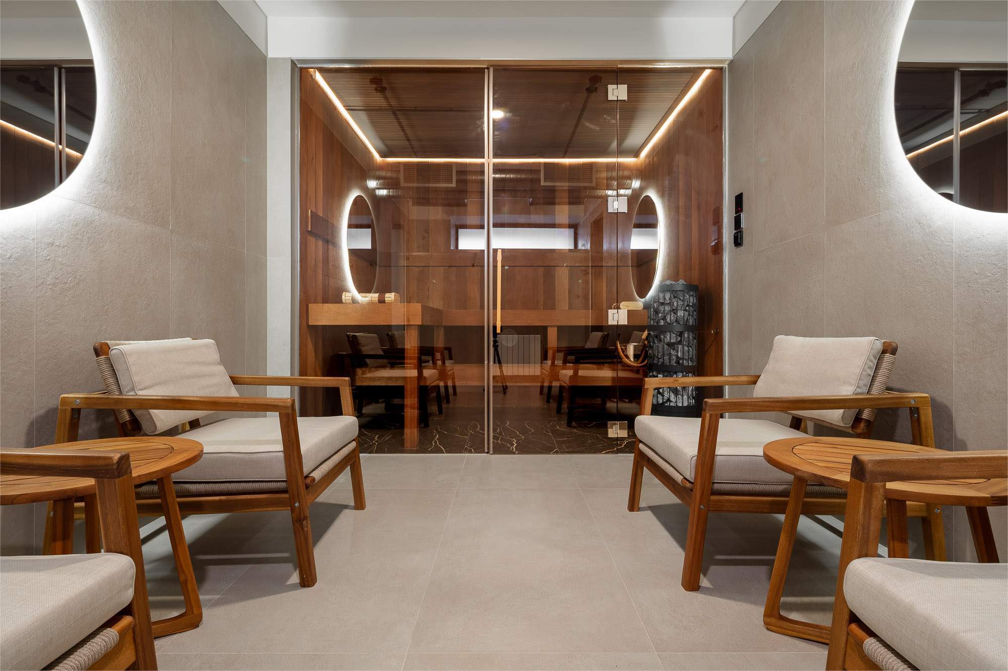 Территория комплекса - 1,2 га, и почти всё пространство отдано жителям: зелёные зоны, детские пространства, теннисный корт, тренажерный зал, лаунж зона с PS, спа-зона.