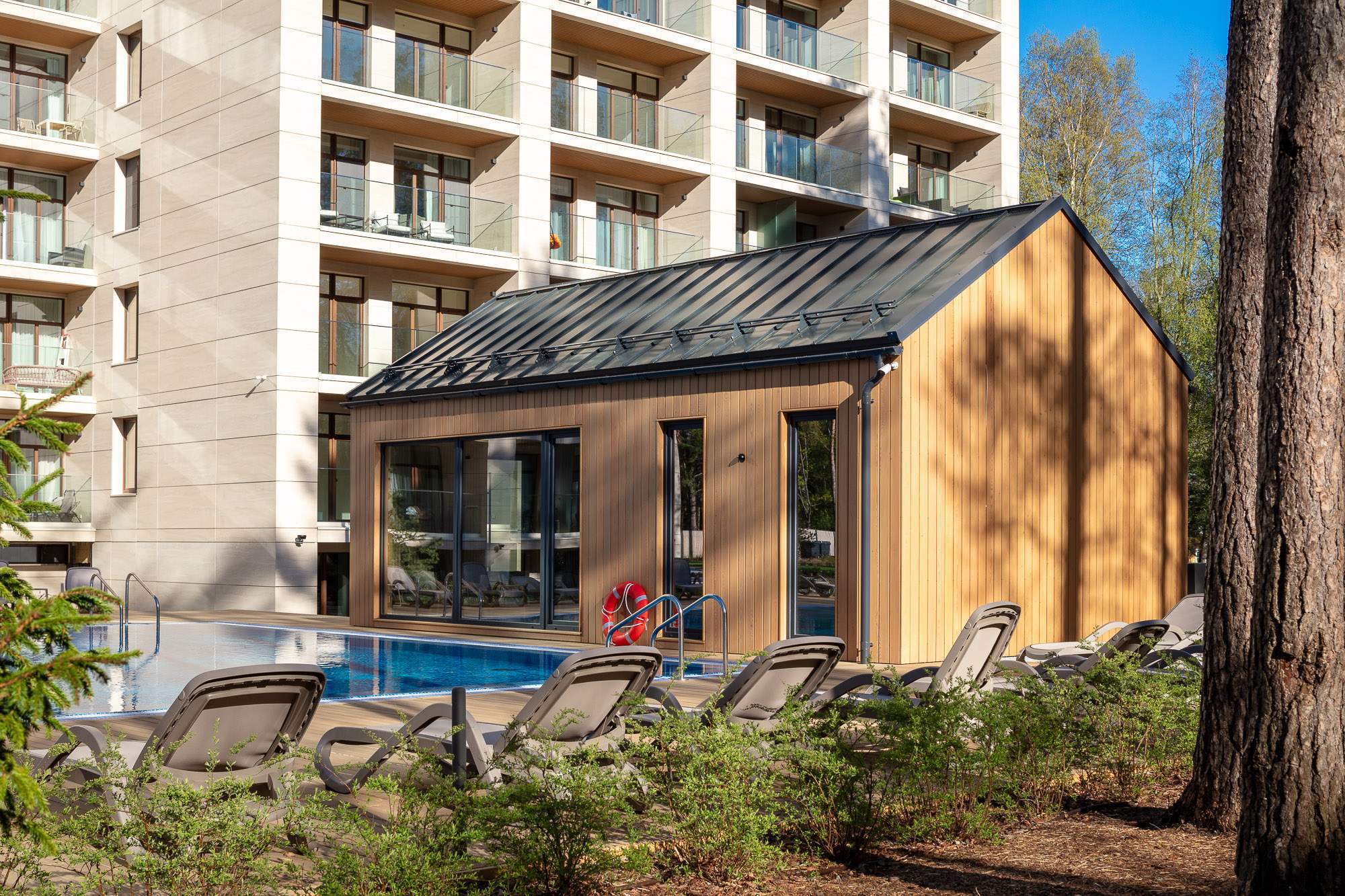 - подогреваемый открытый бассейн 25 м - работает круглый год, хотите - плавайте по дорожкам, тренируясь в своем темпе, хотите - просто отдыхайте в теплой воде, наслаждаясь видом на сосны и свежим воздухом;