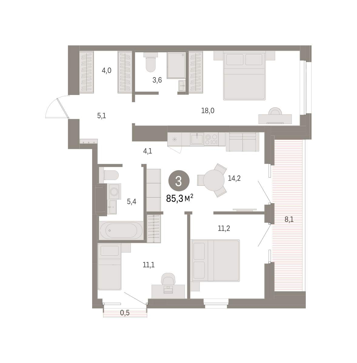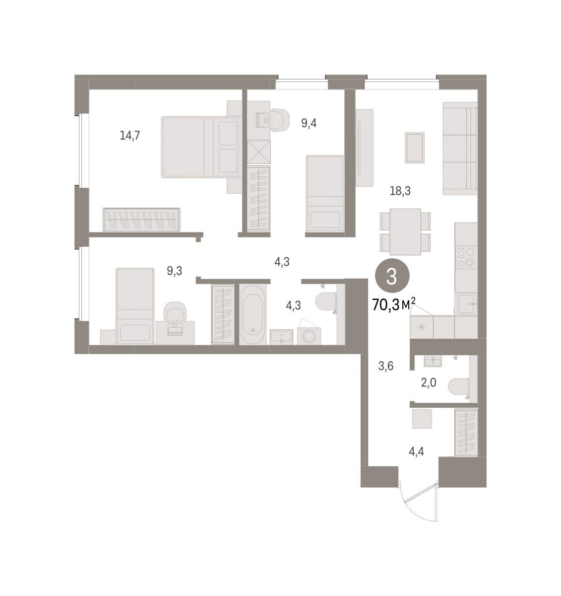 Продам трехкомнатную квартиру в новостройке 71.1 м.кв.